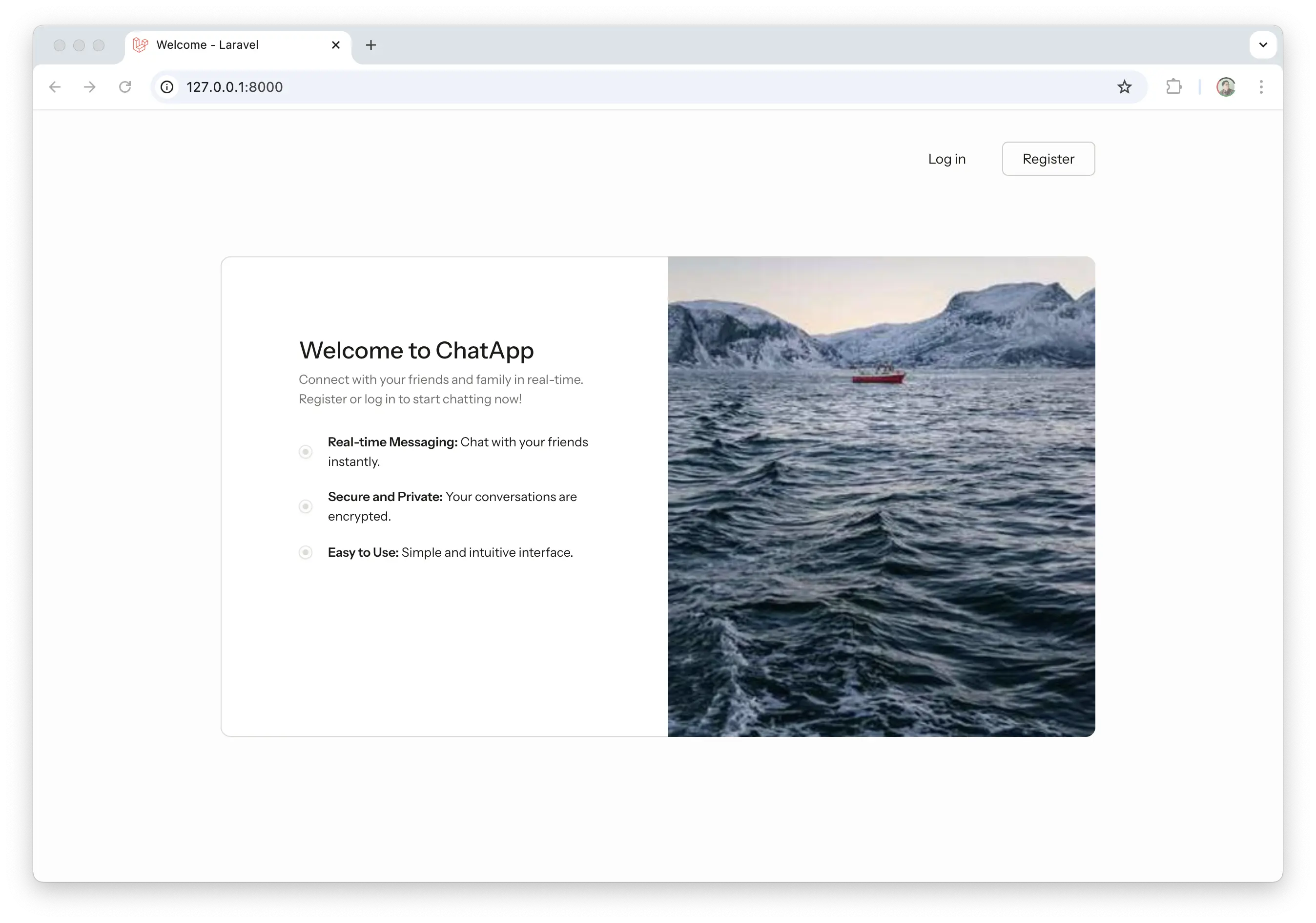 This project is a chatting web app where user can register, login, and chat with each other in real-time. Please update the landing page (welcome.tsx) accordingly.